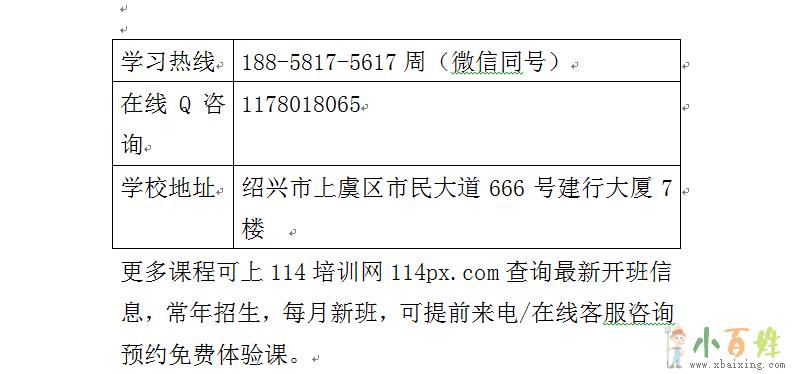 更多课程可上114培训网114px.com查询最新开班信息,常年招生,每月新班,可提前来电/在线客服咨询预约免费体验课x+b+a+i+x+i+n+g+c+o+m。